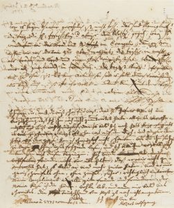 Six petits traits de plume ont été portés sur la lettre par Georg Nikolaus von Nissen, quand il l’a consultée pour sa biographie de Mozart.