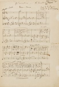 Manuscrit de premier jet de cette célèbre berceuse pour chant et piano, composée alors que Puccini terminait Tosca.