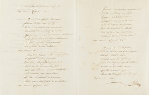 ► Précieux et rare manuscrit de La Marseillaise.Intitulée Hymne des Marseillois, cette copie par Rouget de Lisle comporte les six couplets écrits par lui (ils furent enrichis d’un septième, dit « Couplet des enfants » : « Nous entrerons dans la carrière »…, ajouté en 1792, et dont le texte fut écrit par le poète Louis Dubois) ainsi que le texte originel du refrain qui fut modifié ensuite :