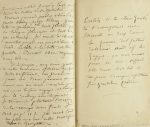 ♦ [Paris 6 ( ?) décembre 1834] à Franz LISZT (2 p.). Elle ne peut se rendre à son concert : « Je suis d’autant plus fâchée de ne pas vous avoir vu ce soir, que je suis maintenant plus présentable. Vous m’avez vue imbécile et folle, vous m’auriez vue contente […] Peut-être avez-vous prié Dieu pour moi ». Elle s’absente quelques jours : « à mon retour […] vous m’amènerez Berlioz, je ne vous en tiens pas quitte »… [II, n° 862, p. 760]