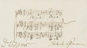 SCHUMANN Robert (1810-1856). P.A.S. MUSICALE, Dresde août 1845 ; 1 page oblong. in-12 (environ 7,4 x 13 cm ; encadrée).