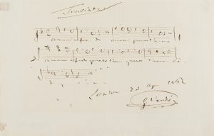 VERDI Giuseppe (1813-1901). MANUSCRIT MUSICAL autographe signé, Traviata, Londres 25 avril 1862 ; 1 page oblong in-8 (2 photos jointes).