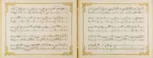 Écrit avec soin à l’encre brune sur trois pages d’un bi-feuillet de papier musique à 10 lignes de la papeterie Lard-Esnault à encadrement décoratif, il s’ouvre sur une page de titre-dédicace, suivie des deux pages de musique en regard l’une de l’autre, chacune avec cinq systèmes de deux portées. À la fin, la signature et la date : « Richard Wagner Paris 29 Juli 1861 ».