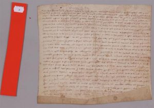 BERRY. 1298 (une pièce). (Joursanvault N° 2743). 1298 Dimanche après l’octave st Martin, Robert de Villefranche certifie que Jean de Grange et Jeanne sa femme ont vendu à Girard Chapelle tous leurs droits en castro ceteri Exaldun, (La...