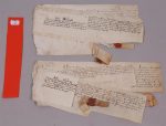 5. (deux pièces parchemin attachées, 36 x 10,5 cm., et, 28,5 x 14 cm.)