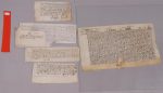 5. Vidimus des lettres de 1441 qui précèdent : À tous ceulz qui verront ces présentes lettres Jehan (Boyseau ?) () garde du scel de la châtellenie de Nanray salut sachent …. a donné et remis quitte et () à Jacquette de la Chastre fille de feu messire Jehan de La Chastre jadis chevalier la somme de trente livres tournois. Parchemin 25 x 24 cm. lié au précédant.