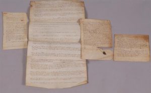 3. Berry « C’est ce que Marc Agrillon tient de moi en la Chastelenie de (Brinon, Brimoys ?) et ce que Guillaume verrier tient de Marc (champs, hommes de corps, rentes, dîmes… ) sans date. Parchemin 17,5 x 23,5 cm. ; reste de sceau pendant sur lacet.