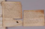 BERRY. XIVe siècle (4 pièces) (Joursanvault N° 2749). 1. Année 13… Impositions pour Jean de Thouars. Parchemin 13 x 42 cm. 2. Berry, Vierzon arrêt de la cour de la prévôté pour le comte de Blois (concerne le château et châtellenie de...