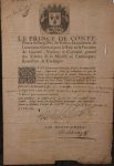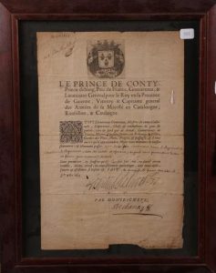 36 cm ; signée du Prince de Conti, contresignée par Dechanay.