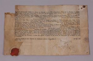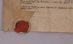 Signature et cachet de cire. (petit manque à un angle sans atteinte au texte).