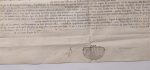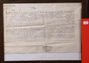 (Coiffeur-barbier). 1728. Lettre de Maitrise de Barbier-perruquier baigneur étuviste pour Toussaint Lebreton, de La Rochelle, du 13 Mai 1728. Une pièce de parchemin imprimée et manuscrite de format oblong 41,5 x 25,5 cm. Sans le sceau pendant....