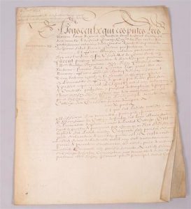 PARIS). (censive) 8 janvier 1625. Reconnaissance par MM de la Faculté de Théologie de Paris de la rente de 50 sols parisis sur la maison de St-Jean l’Evangeliste, rue des Amandiers pour le Collège de Hubant ou de l’Ave Maria. 2 pages et demi...