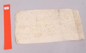 PARIS). 6 février 1620. Censive. Cens dû au Collège de la Marche à cause de son fief du Bijou-aux-Moineaux. Parchemin 34 x 18 cm. Le collège de la Marche est un collège de l'ancienne université de Paris situé au n° 37 de la rue de la...