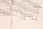 PARIS). Décision de la prévôté de Paris du 1er août 1460 : héritage de feu maître Thomas Petit, en son vivant procureur au parlement sur une maison située à Paris rue de La Bretonnerie. Pièce de 52 x 55 cm. (grand parchemin en parfait état)