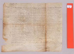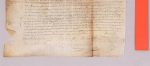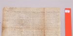 PARIS). 1663, 16 juillet : décision des Présidents trésoriers de France généraux des finances en la généralité de Paris de donner sur le domaine des revenus en nature au chantre de la Sainte Chapelle du Palais. Pièce de parchemin 31,5 x 26 cm.