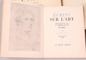 (ART). 4 volumes : GIDE (A.). Notes sur Chopin. 10 lithographies originales de Marie Viton. P., L’Arche, 1948, petit in-4 broché, numéroté sur vélin Crevecoeur. – INGRES. Ecrits sur l’art. Illustré de dessins d’Ingres. P., La Jeune...