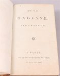 CHARRON (Pierre). De la Sagesse. Paris, Jean-François Bastien, 1783, in-8 relié demi basane fauve à coins, dos lisse orné, pièce de titre havane. (un mors fendu). Portrait-frontispice.
