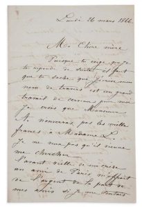 ► Lettre autographe signée de Charles Baudelaire adressée à sa mère, Madame Aupick.