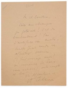 CÉLINE LOUIS-FERDINAND (1894-1961) - L.A.S, 1944, à JULLIEN-COURTINE ; 1 page in-4.