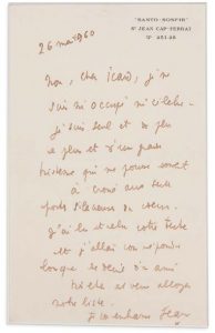 ♦ Lettre de Cocteau peu après la mort de Paul FORT à Renaud Icard, sculpteur, peintre et galeriste français.