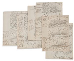 Le manuscrit est écrit à l'encre brune, comporte des ratures et corrections et de nombreuses annotations dans les marges.