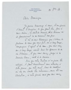 Lettre d'empathie adressée à Dominique Aury à la mort de son compagnon Jean PAULHAN.
