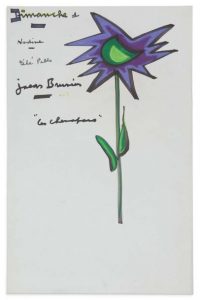 PRÉVERT JACQUES (1900- 1977) - Texte autographe et dessin original, Éphéméride pour un dimanche 1 ; 41,7 x 26,8 cm.