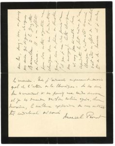 ▬► Lettres au célèbre critique littéraire Paul Souday (1869-1929), auteur d'une biographie de Proust. 45, rue de Courcelles mardi [3 juillet 1906].