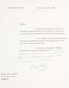 • Plus 11 lettres adressées à Mme Jeannie Paul VALÉRY (1877-1970) par Jean BALLARD, Charles de GAULLE (4), Fernand GREGH, Marcel-Edmond NAEGELEN, Eugenio d'ORS, André SIEGFRIED