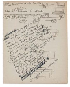 VIAN BORIS (1920- 1959) - Je n'ai pas gagné le prix de la Pléiade, poème autographe illustré, [juillet 1946] ; 1 page in-8 à l'encre.
