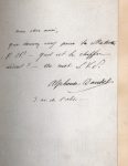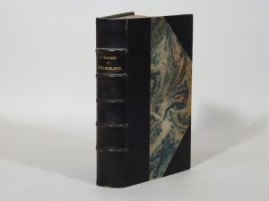 L'Évangéliste. Roman parisien. Paris, E. Dentu, 1883. In-12, demi-maroquin noir, non rogné, couverture et dos (H. Blanchetière). Édition originale. Un des quelques exemplaires sur hollande, avec quelques japons. On y a joint un billet autographe signé d'Alphonse Daudet : Mon cher ami, que donnez-vous pour la Statue V[ictor] H[ugo] ? – Quel est le chiffre décent ? – Un mot s.v.p. Ce monument en bronze sculpté par Barrias s'éleva place Victor-Hugo, à Paris, de 1902 à 1941, date où il fut fondu par le régime de Vichy. Daudet était membre du premier comité de souscription, formé dès 1881, aux côtés de Clémenceau, Renan, Banville, Coppée, Leconte de Lisle, Dumas fils, etc. Infimes frottements.
