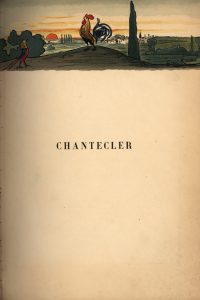 Chantecler. Pièce en quatre actes, en vers. Paris, Charpentier et Fasquelle, 1910. Grand in-8, demi-maroquin brun avec coins, tête dorée, non rogné, couverture décorée en cuir souple (Reliure de l'époque). Édition originale, imprimée sur papier japon, publiée à l'occasion de la première représentation de la pièce de Rostand, le 7 février 1910, au Théâtre de la Porte-Saint-Martin. Une reproduction en couleurs d'une aquarelle de Rostand orne le faux-titre. Le décor de la couverture d’éditeur, en cuir souple, est signé de René Lalique. Exemplaire sur japon impérial imprimé pour Henry Roujon (voir les lot nos 51 et 74), enrichi d'un envoi et d'une lettre autographes signés de l'auteur. Mors supérieur et coins frottés, un feuillet et le plat inférieur de couverture déreliés, lettre un peu piquée, gardes brunies.