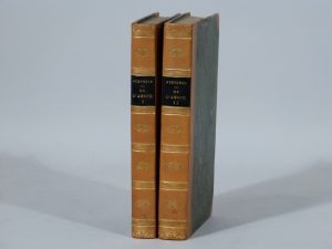 De l'amour. Paris & Lyon, Bohaire, 1833. 2 volumes in-12, demi-basane fauve avec coins, dos lisse orné, pièce de titre noire, tranches mouchetées (Reliure pastiche). Édition originale de 1822 remise en vente sous un titre de relai à l'adresse de Bohaire. Bel exemplaire dans une excellente reliure à l'imitation. De la bibliothèque de Pierre-Louis Duclos, homme de lettres, avec ex-libris. Pâles rousseurs sur les faux-titres et titres des deux tomes.