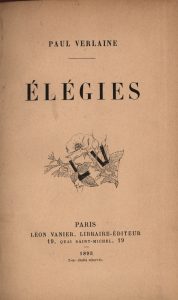 Élégies. Paris, Vanier, 1893. In-12, bradel demi-percaline rose, plat de papier vermiculé, couverture (Franz). Édition originale. Charmant exemplaire en fine reliure de Franz, actif à Paris de 1872 à 1938. Menus accrocs à la pièce de titre.