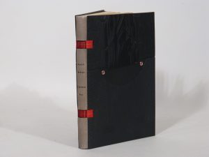 L'Amour fou. Paris, Gallimard, 1937. In-12, plats moulés en rim noir, dos de box gris, coutures apparentes sur lanières de toile rouge, couverture (Jean de Gonet Artefacts). Édition originale, illustrée de dix-neuf reproductions de photographies par Man Ray, Brassaï, Cartier-Bresson, Dora Maar. Bel exemplaire en reliure revorim, comportant sur une garde une note autographe signée de Jean de Gonet relative à la reliure « rim », qui à sa façon a provoqué un amour un peu fou chez un nombre conséquent d'amateurs.