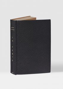 La Peste. Paris, Gallimard, 1947. In-12, maroquin anthracite janséniste, dos lisse, doublures et gardes de maroquin safran, couverture et dos, tranches dorées sur témoins, étui bordé assorti (Alix). Édition originale. Un des 215 exemplaires sur vélin pur fil. Superbe exemplaire en reliure triplée d'Alix.