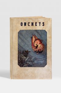 Onchets. Paris, s.n., 1926. In-4, bradel vélin ivoire à recouvrements, importante composition originale peinte sur le plat supérieur, chiffre de l'auteur peint sur le second plat, dos lisse muet, tête dorée, non rogné, couverture muette (Max de Beauregard). Édition originale, décorée par Paul Vera. Tirage à 333 exemplaires, celui-ci un des 11 sur japon. Exemplaire d'auteur dans une très belle reliure peinte signée et datée Max de Beauregard, juin 1927, au contreplat supérieur. On joint deux ouvrages, du même : Nocturnes. Paris, Henri Baguenier Desormeaux, 1914. Grand in-8, broché. Plaquette tirée à 33 exemplaires seulement, celui-ci un des 11 de tête sur japon (n°6). – Onchets. Paris, s.n., 1926. In-4, broché, non coupé. Un des 300 exemplaires du tirage courant. Quelques piqûres.