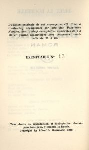 Beloukia. Paris, Gallimard, 1936. In-12, broché. Édition originale. Un des 35 exemplaires sur alfa de Navarre, seul grand papier. Rare.