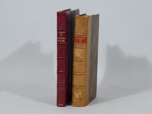 Ensemble trois ouvrages. Le Lys rouge. Paris, Calmann-Lévy, s.d. [1921]. In-12, demi-basane citron (Reliure de l’époque). Nouvelle édition, revue et corrigée par l’auteur. Envoi autographe signé de l’auteur à Roger Pelletier. Dos un peu frotté, intérieur jauni, premiers feuillets partiellement déreliés. Le Chanteur de Kymé. Paris, Ferroud, 1923. In-8, demi-maroquin rouge avec coins, tête dorée, non rogné, couverture et dos (Stroobants). Illustrations en couleurs de Maurice Lalau. Un des 200 exemplaires sur vélin d’Arches avec une suite des illustrations en couleurs avec remarques. On joint : CALMETTES (Pierre). La Grande passion d’Anatole France. Paris, Seheur, 1929. In-8, demi-maroquin rouge avec coins, tête dorée, non rogné, couverture et dos (Reliure de l’époque). Édition originale illustrée. Un des 75 exemplaires de tête sur hollande.