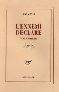 L'Ennemi déclaré. Textes et entretiens. Édition établie et annotée par Albert Dichy. Paris, Gallimard, 1991. In-8, broché, non coupé. Édition originale, constituant le sixième tome des Œuvres complètes de Jean Genet. Un des 80 exemplaires sur vergé blanc de Hollande, seul grand papier.