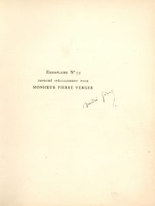 Le Journal des Faux-Monnayeurs. Paris, Eos, 1926. In-8, broché. Édition originale. Tirage à 561 exemplaires, celui-ci un des 500 sur vergé blanc. Exemplaire nominatif de Pierre Verger, signé par Gide.