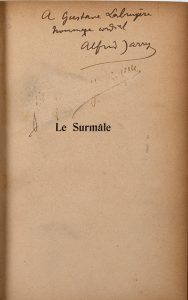 Le Surmâle. Paris, Éditions de la Revue Blanche, s.d. [1902]. In-12, bradel demi-maroquin vert, tête dorée, non rogné (Reliure postérieure). Édition originale. Envoi autographe signé de l'auteur à l'impresario Gustave Labruyère, qui fut notamment secrétaire général du Théâtre de l'Œuvre. Dos frotté et passé, seconde signature grattée sous l'envoi. On joint, relié à l'identique : RACHILDE. Alfred Jarry ou Le Surmâle de lettres. Paris, Grasset, 1928. Édition originale. Envoi autographe signé de l'auteur à Gustave Kahn.