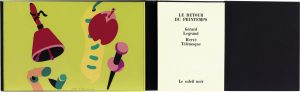 Le Retour du Printemps. Illustration de Hervé Télémaque. Paris, Le Soleil noir, mars 1974. In-12 carré (180 x 140 mm) de 109 [+1] pp., 1 f. blanc, broché, couverture indépendante à rabats, volume logé dans un double emboîtage noir oblong et à compartiment comportant, en vis-à-vis et sous plexiglas, une sérigraphie originale en couleurs (195 x 320 mm). Édition originale. — Un des 300 exemplaires présentés dans un double emboîtage comportant une sérigraphie en couleurs sur vélin d’Arches signée par Hervé Télémaque. Monod, n° 7057.