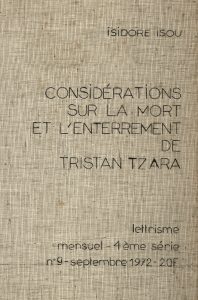 Huit livraisons de la revue Lettrisme. 1970-1972. 8 brochures ronéotypées in-4. Textes d'Isidore Isou : La Création cinématographique et les nouvelles vagues ; Les Créations du lettrisme ; Les Bases de la culture scolaire, ou Introduction à la kladologie ; Défense de l'art contre les réactionnaires contemporains ; Considérations sur la mort et l'enterrement ; et de Maurice Lemaître : Toujours à l'avant-garde de l'avant-garde, jusqu'au paradis et au-delà ; L'Anti-sexe, spectacle des strip-teases ciselants ; Huit films lettristes. On joint six autres brochures lettristes : Ion. Centre de création. N°1. Avril 1952. In-8, broché. – La Musique lettriste. Paris, La Revue musicale, 1971. N°282-283. – L'Avant-garde lettriste et esthapeïriste. [1967]. Nouvelle série, n°1. – Front de la jeunesse. Février 1970. N°11. – ISOU (Isidore). Traité d'économie nucléaire. I. Le Soulèvement de la jeunesse. Tome III. 1971. – ISOU (Isidore). Supplément du Soulèvement de la jeunesse. Tome I. 1972.