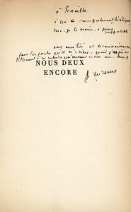 Nous deux encore. Paris, Lambert, 1948. 12, broché. Édition originale de ce très beau texte écrit par Michaux à la suite de l'accident mortel de sa femme. Exemplaire sur vélin du Marais. Envoi autographe signé. On joint, du même : Plume, précédé de Lontain intérieur. Paris, Gallimard, 1938. In-12, broché. Première édition collective. Exemplaire du service de presse. Envoi autographe signé à André Lhote.