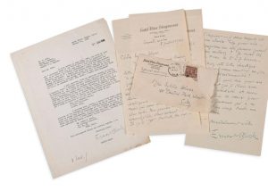 • une L.S. au Dr E. Roth des éditions Boosey et Hawkes, Agate Beach (Oregon) 21 janvier 1948 (1 p. in-4 en anglais), au sujet de l'édition des partitions de poche de son Concerto pour violon et sa Suite symphonique...