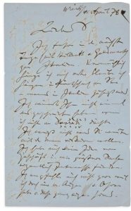 BRAHMS JOHANNES (1833-1897) - L.A.S., Wien 4 avril 1878, à son éditeur Fritz SIMROCK ; 3 pages in-8 sur papier bleu.