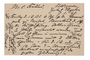 BRUCH MAX (1838-1920) - L.A.S., Barmen 7 janvier 1895, au Prof. Dr L. WOLFF, Akad. Musikdirector à Bonn ; 1 page oblong in-12, adresse au verso (Postkarte) ; en allemand.