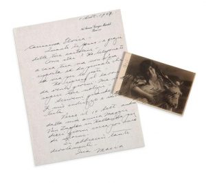 • une carte postale a.s. d'Elvira de HIDALGO (1891-1980) à Clary Zannoni à Rome, signée «Elvira» au recto sur sa photographie, Milan 17 novembre 1921.