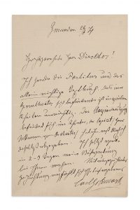 GOLDMARK KARL (1830-1915) - L.A.S., Gmunden 22 octobre 1874, [au chef d'orchestre Johann HERBECK] ; 1 page in-8 ; en allemand.